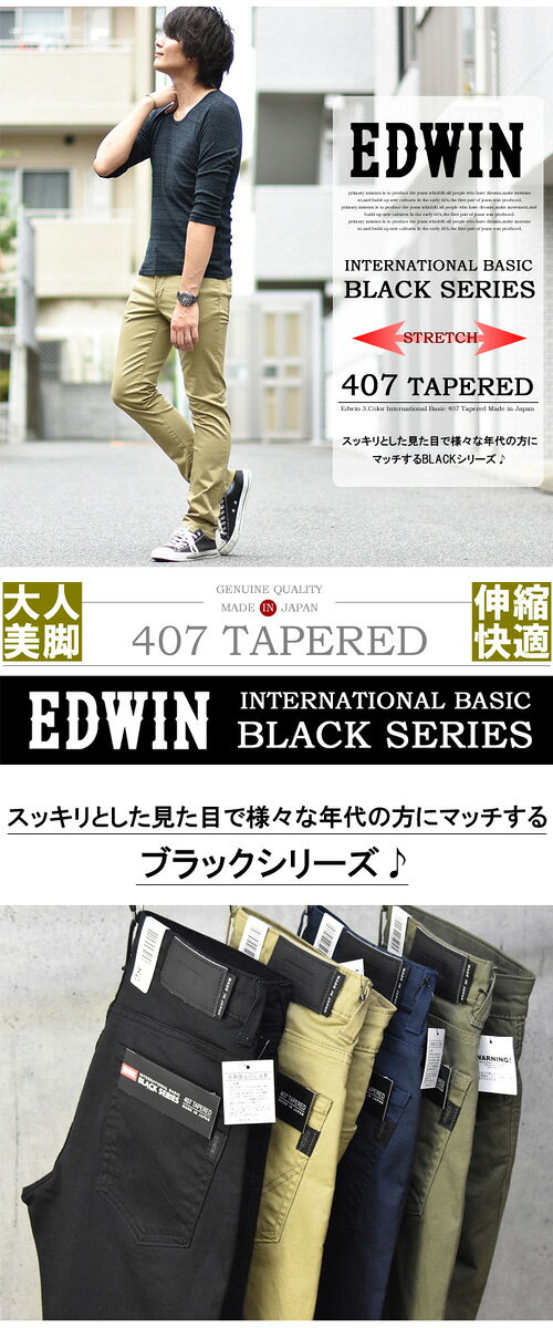 ギフト対応 INTERNATIONAL BASIC(インターナショナルベーシック) BLACK SERIES 407 TAPERED ふつうのスリム 30年を超える歴史、販売本数累計3000万本以上を誇る EDWINのロングセラーシリーズ『INTERNATIONAL BASIC』 より新シリーズ『BLACK SERIES』が登場しました。