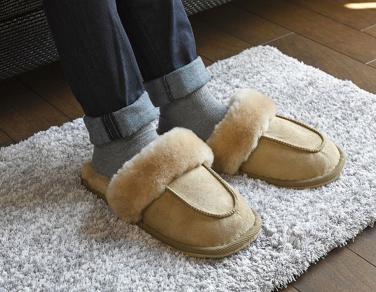 冷え症の方に芯から温まってほしいムートン素材のスリッパです。