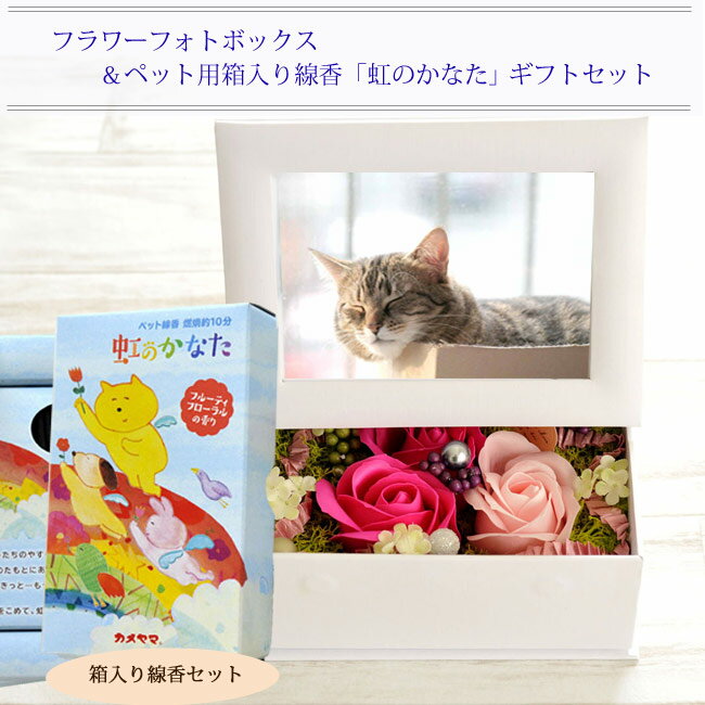 ■フラワーフォトボックス 商品サイズ:深さ6cm×幅16cm×高さ17cm ■ペット用お線香【虹のかなた】 【商品内容】 内容量…約30g 燃焼時間:約10分 フルーティフローラルの香り 箱のサイズ:横約2.4cm×縦約7.2cm×高さ約11.5cm ご注文後に当店より”受付完了メール”が来ない??場合 季節のご用途等 2017 の ランキング入り 人気商品 おすすめのポイント!フラワーキッチンのこだわり人気商品 ご用途などをご紹介! 1月 お正月 ご挨拶 門松 正月 成人式 成人の日 出産祝い 誕生日祝い オシャレ フラワーギフト ボックス 2月 バレンタインデー 本命 義理 お祝い 誕生日 女性 結婚記念日 古希 喜寿 米寿 還暦祝い お礼 引越し祝い 3月 ひな祭り ひなまつり ホワイトデー お返し 男性 卒業式 卒園式 卒業祝い 結婚祝い 退職祝い 定年 送迎会 4月 記念日 入学式 入園式 入学祝い 就職祝い 開店祝い 改築祝い 歓送迎会 新築祝い 薔薇 5月 母の日 母の日ギフト 赤 カーネーション スイーツセット 歓迎会 楽屋訪問 大輪 バラ レッド 6月 父の日 フラワー ガーベラ ヒマワリ ビジネス ギフト アレンジメント 黄色 7月 七夕 お中元 父 季節の花 ひまわり お見舞い フラワーアレンジメント 8月 金婚式 銀婚式 白 ボックスフラワー 自宅用 向日葵 ホワイト イエロー 9月 敬老の日 ヒペリカム スイーツ セット お彼岸 結婚式コンサート ホームパーティ 10月 ハロウィン イベント メッセージ 発表会 花 電報 11月 夫婦の日 個展 展覧会 展示会 開店 オープン アレンジ 母 おまかせ アレンジメント グリーン 12月 サプライズ プレゼント お歳暮 アイビー オレンジ ばら ピンク Flower Kitchenのこだわり あす楽 【あす楽_土曜営業】 【あす楽_日曜営業】 【あす楽_年中無休】夏期及び年始休業を除く 即日発送 送料無料 ラッピング無料 メッセージカード無料 メッセージカード付き 早割 画像配信 こちらの商品は送料無料でお届けいたします。